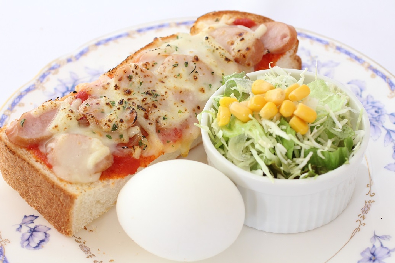 ・ピザトースト・ボイルドエッグ・ミニサラダ